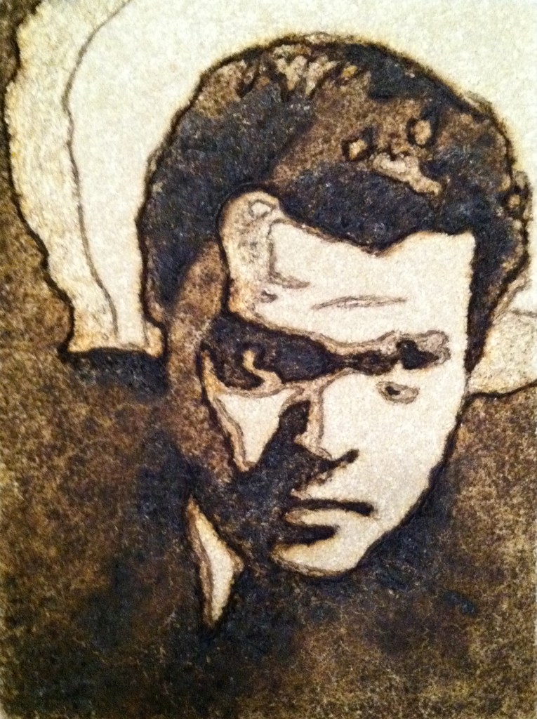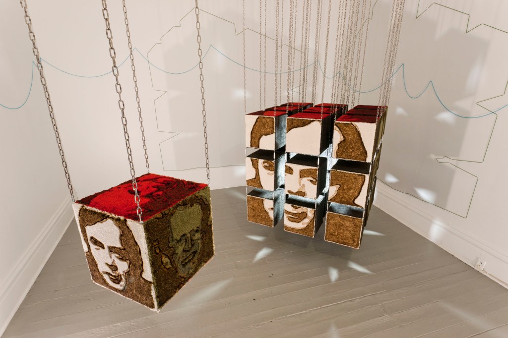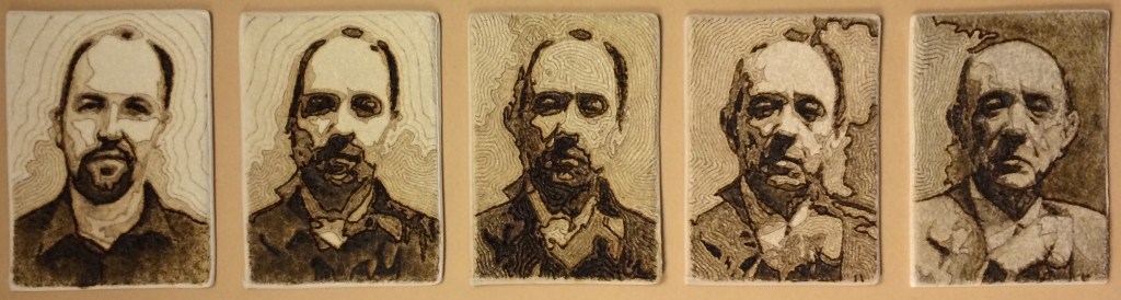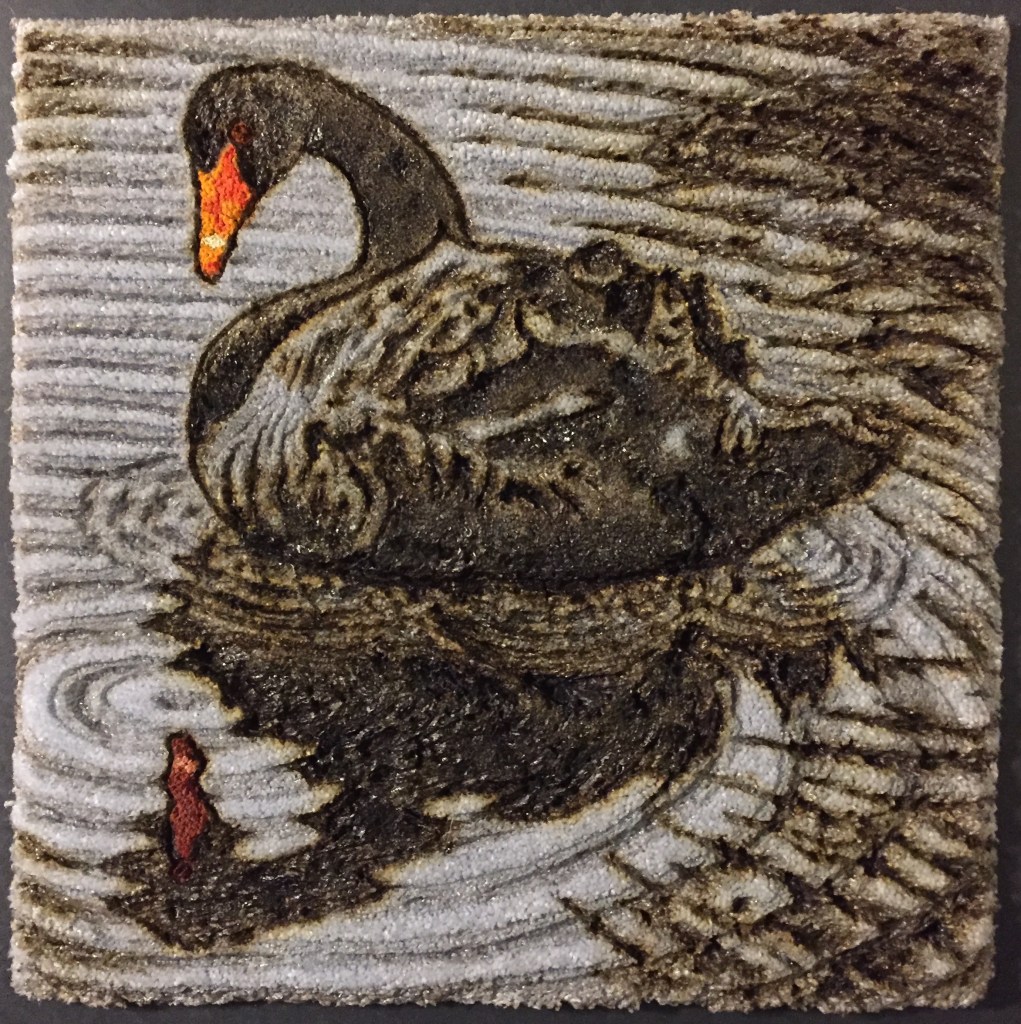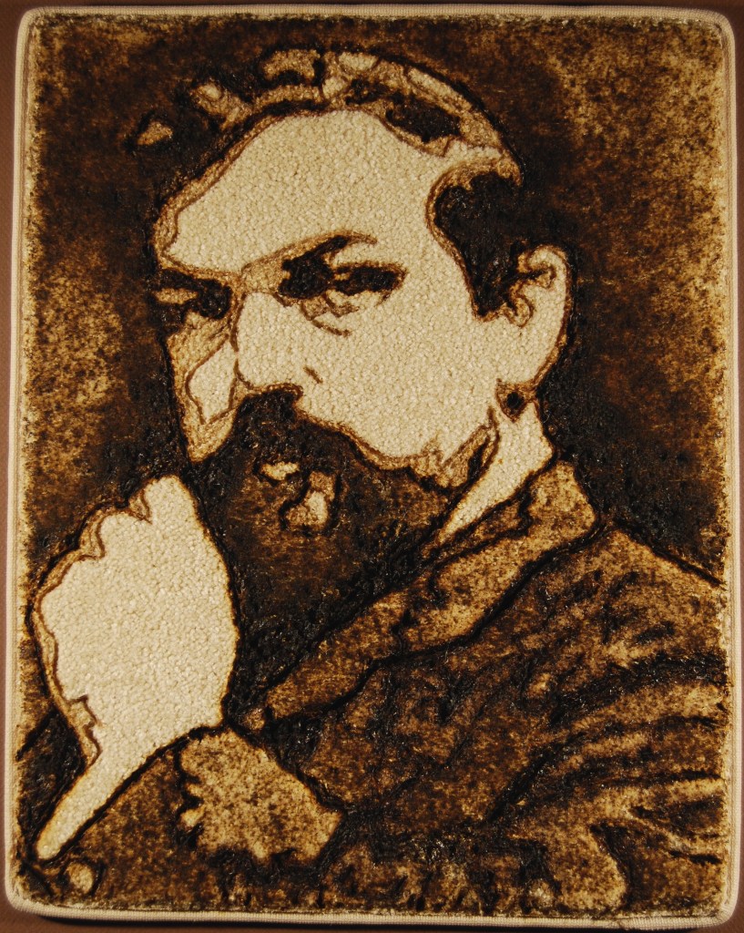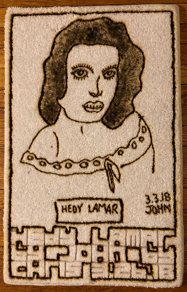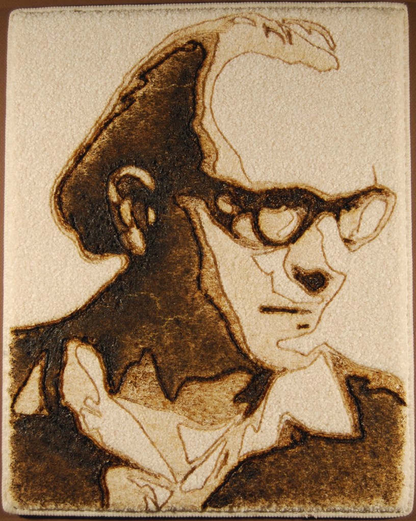 Melted and singed nylon carpet. Created with heat pen, fireworks fuse, loose gunpowder, and blowtorch. Sometimes just cut.