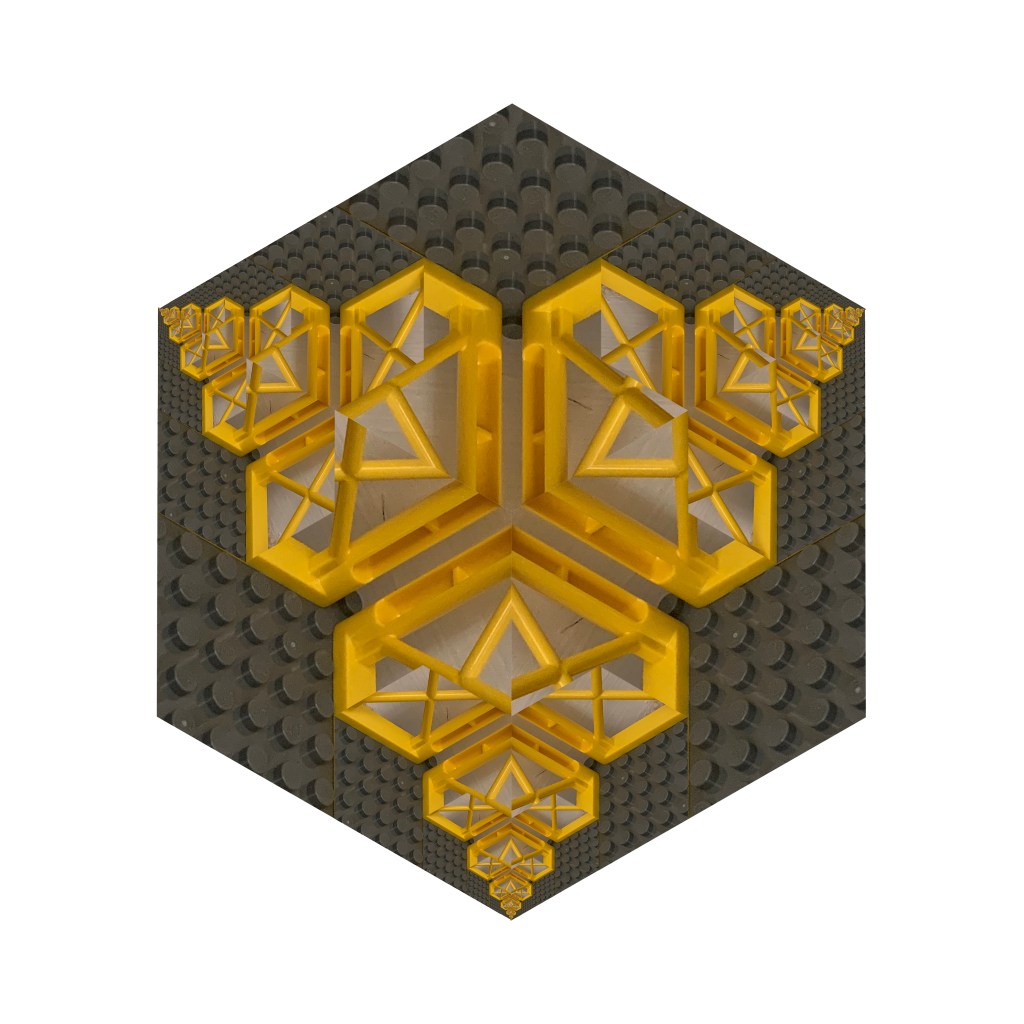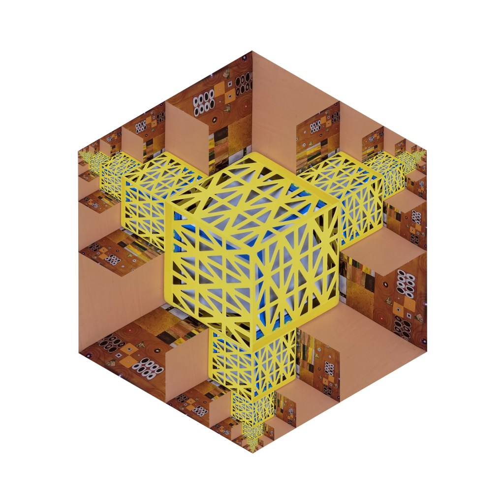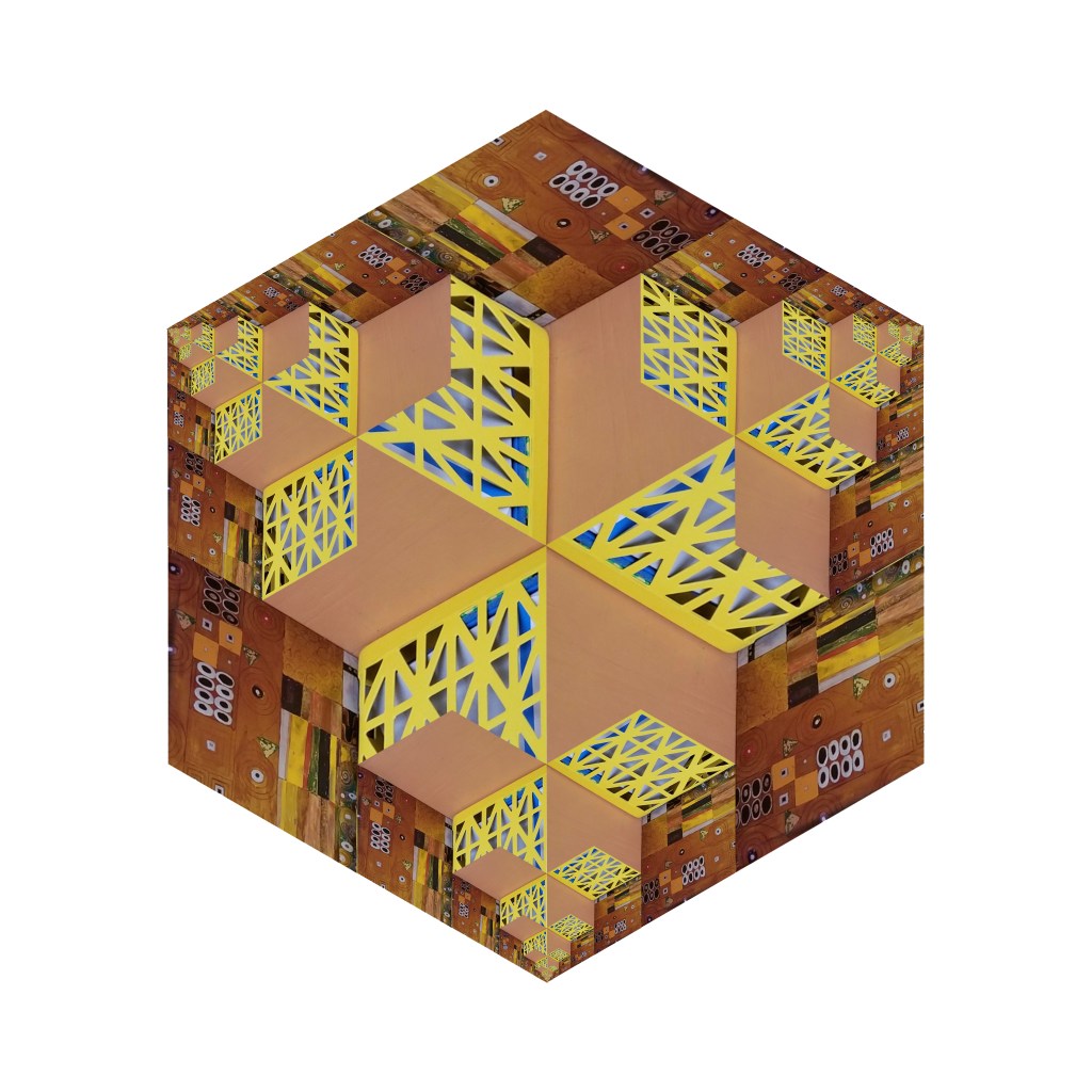 Imaginary yellowish center cube. Tiles by Jennifer Palumbo, Jamie Fair, and Jessica Rivera McGlothin