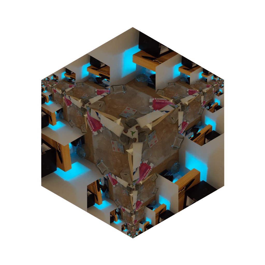 The Corners Project asks friends, family, and other participants to share photographs of the corners that inhabit their lives. I crop their photos into hexagonal tiles/cubes, and use those tiles/cubes to build virtual objects and environments.