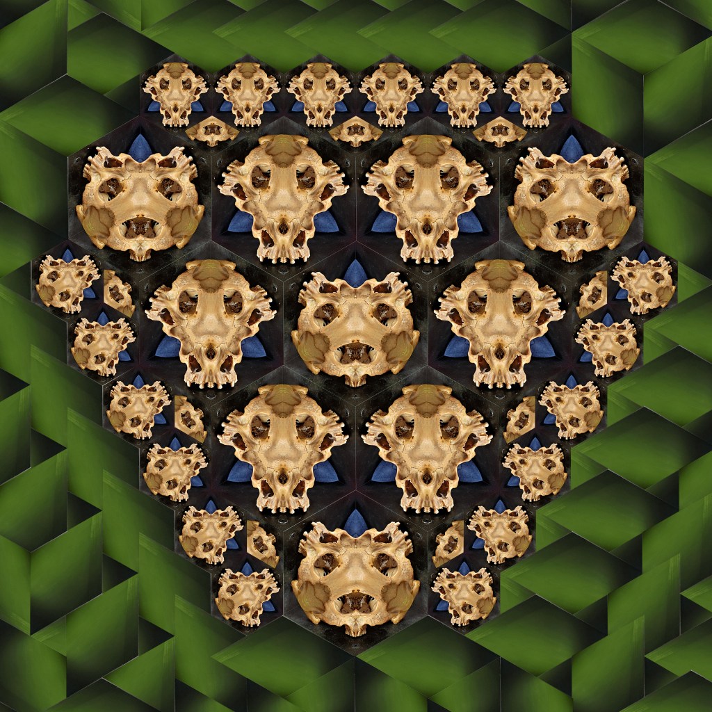 Imaginary greenish center cube. Tiles by Emily Pape, Jim Izzy Israel, and Wendy Bennett