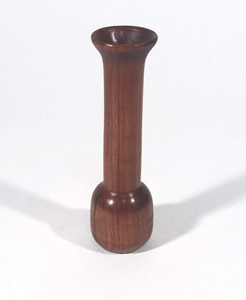 Bud vase – (1980s – 1990s) – walnut – 4.875” x 1.5” x 1.5” – when he inherited his first lathe, much of his work consisted of small vases, a motif he often came back to for years. (Catalog #057)