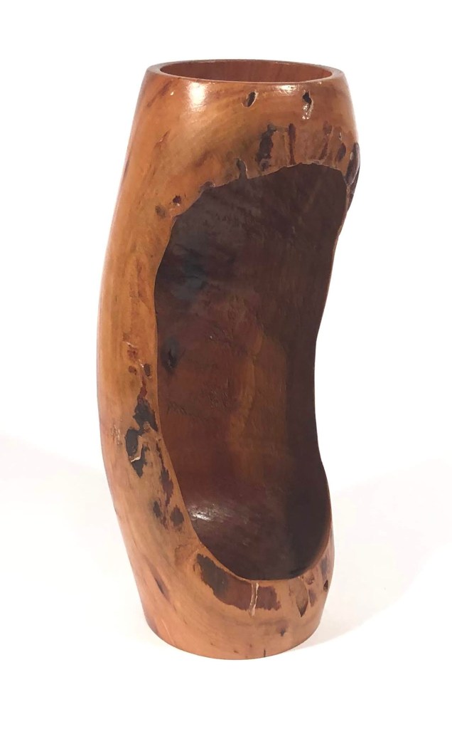 Vase – (2000s) – cherry or maple? – 8.5” x 6.75” x 6.5” – Another of his more abstract pieces, embracing the void. (Catalog #054)